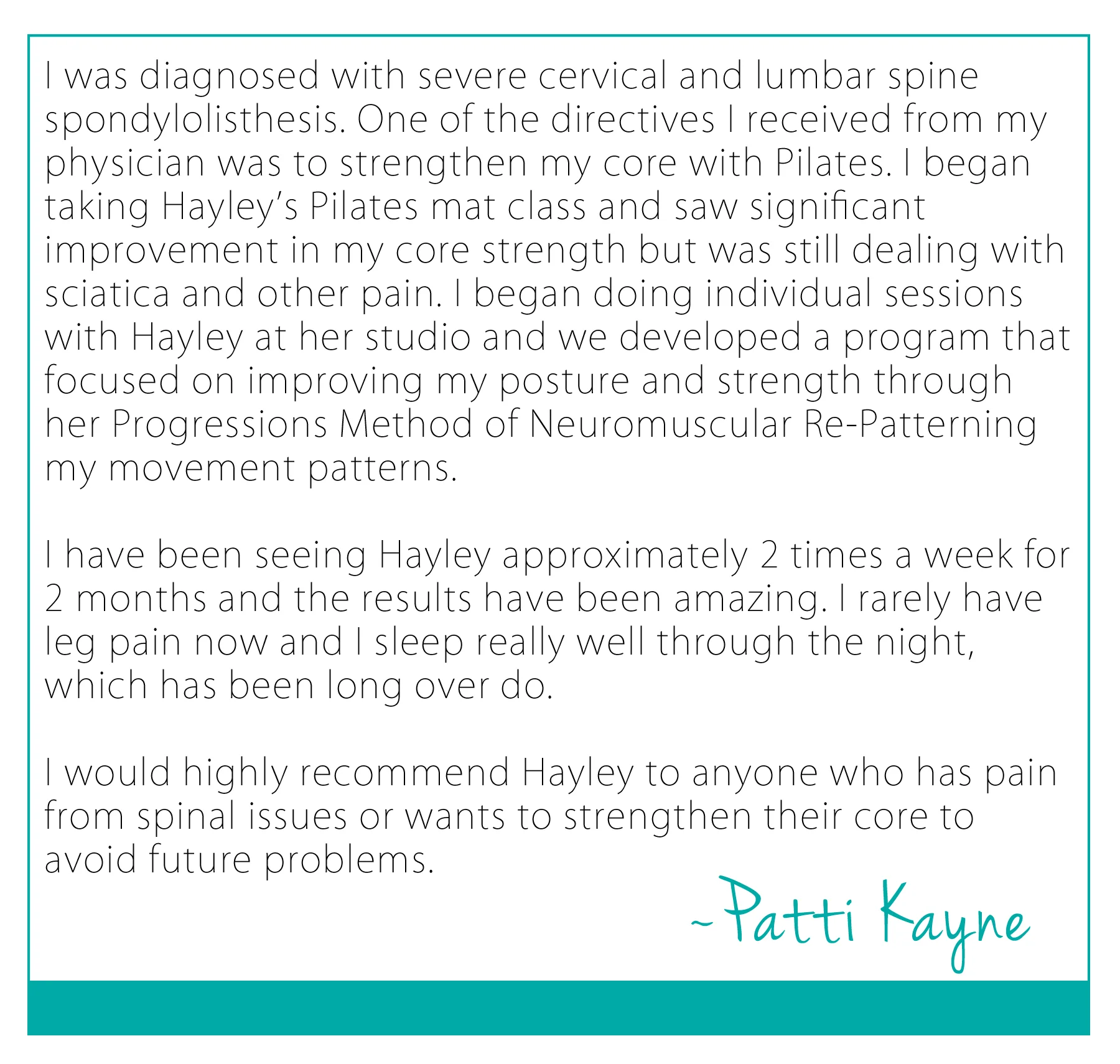 Hayley also teaches her method in teacher training courses to instructors around the world. Her education methods for client programming come from a expertise and calling for connecting structural alignment with efficiency of functional movement, resulting in measurable and effective change in activities and lives. Hayley is an industry presenter and her coursework is approved through the Pilates Method Alliance for continuing education credits.